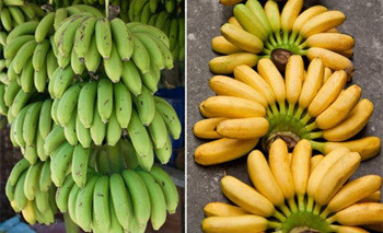 如何鉴别:乙烯利催熟香蕉较为常见,但有些不法商家使用二氧化硫和甲醛等化学药品为香蕉催熟,而这就需要一定的识别技巧:首先催熟的香蕉表皮一般不会有香蕉熟透的标志——“梅花点”,因此在挑选香蕉时,有“梅花点”的香蕉相对安全;其次用化学药品催熟的香蕉闻起来有化学药品的味道;此外自然熟的香蕉熟得均匀,不光是表皮变黄,而且中间是软的;而催熟香蕉,中间则是硬的。