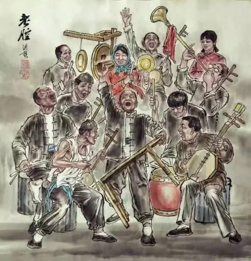老腔震肺裂,嘶哑泣鬼神,家什传真谛,贼曲魂魄音。-----题文友葛洪彪画【书画诗评家。洛阳张飞曾】