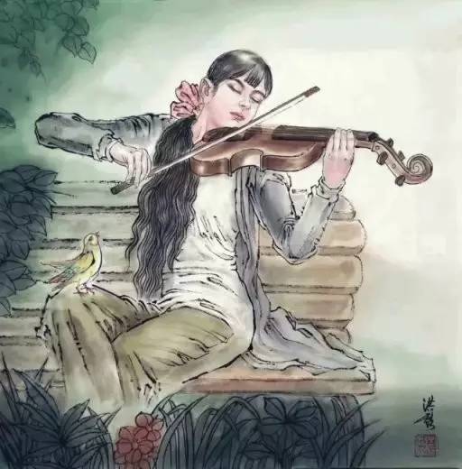 佳丽醉琴韵,百灵得归隐,情感入梦里,悦者几开心。----题文友葛洪彪画【书画诗评家。洛阳张飞曾】