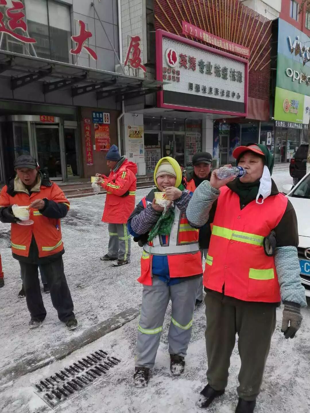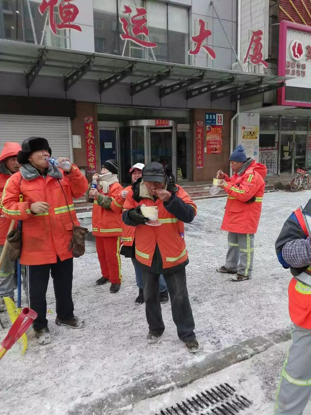 看到很多环卫工人正在非常卖力地除雪,