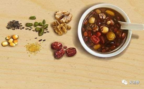 糯米,薏米,红枣,芝麻,红糖,小米,花生米,核桃,桂圆