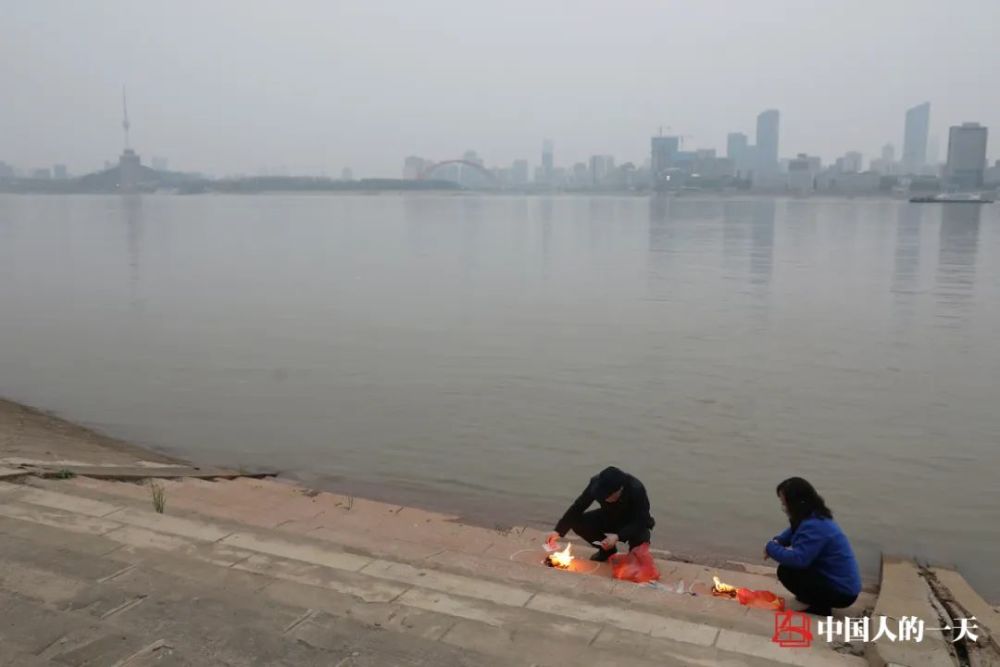 4月4日,全国举行哀悼活动。就在前一天,走出家门的武汉人来到江边,寄托哀思,重新生活。