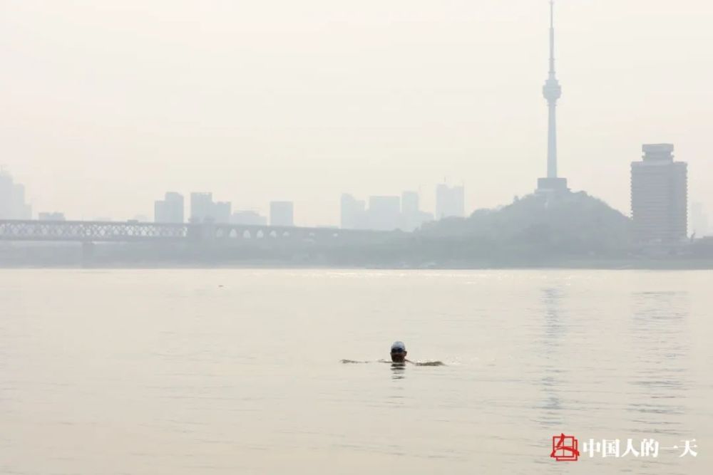 4月3日,武汉武昌江滩,在长江里游泳的市民。有朋/摄