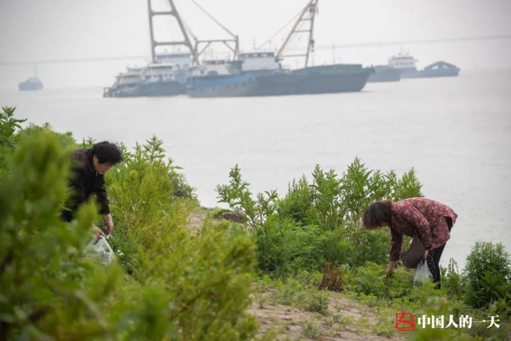 4月3日,武汉市民在长江边摘野菜。湖北日报 柯皓/摄