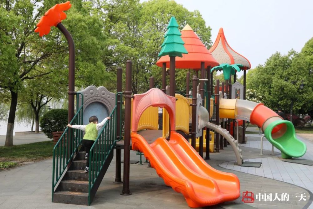 4月3日,武汉武昌江滩,在游乐场玩耍的小朋友。有朋/摄
