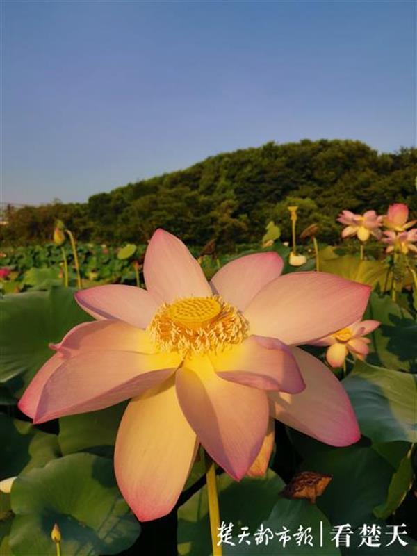 确实,江城可谓处处见荷塘。东湖、沙湖、墨水湖、南湖……有湖有塘的地方一般都有荷风送香,即便在偏远的经开区龙灵山生态公园,山脚下一片池塘里也绽放朵朵荷花,给充满野趣的公园添了几分灵气。