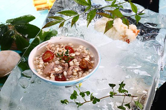 (4)薏米有清热去湿的功效,天气燥热或胸中烦闷时,煲些白果薏米粥吃,能清除燥热,使身体舒畅。