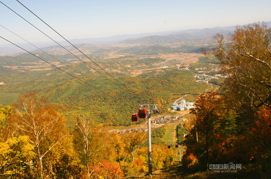 亚布力风景区距离哈尔滨市区200公里,自驾2个半小时,驾车出城走在绥满高速公路上,沿途可以看到田地里秋收的景象。进入景区连片的五花山景色,让人目不暇接,可以坐缆车登山,站在山顶享受大自然带来的秋日美景。
