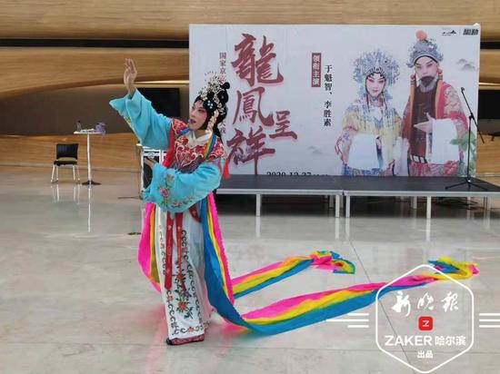 来自哈尔滨的京剧票友们惊艳亮嗓,表演了现代京剧选段《红灯记》《龙江颂》《江姐》等片段。