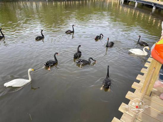 天鹅湖的白天鹅、黑天鹅还有鸳鸯们共同戏水,十分惬意!天鹅们与游客互动,彰显和谐的气氛。精灵般的小松鼠也不失时机的出现在人们的视野中,让游客大饱眼福。