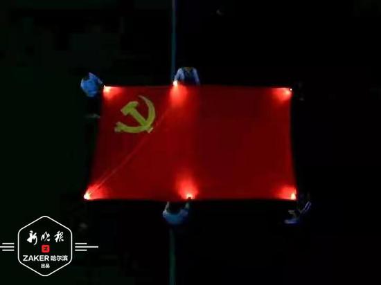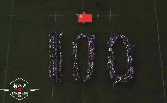 在夜幕下的操场,800 名学子手握荧光棒,在尽情奔跑的途中,接受党史问答挑战,于奔跑中体会建党百年历程中的艰辛与荣耀。夜跑结束后,同学们纷纷将获得的荧光五角星贴在展板上,点亮 “1921-2021” 字样。随后,同学们列出 “100” 的巨型方阵,点亮党旗,庆祝建党一百周年。“ 当年中国共产党的成立照亮了中国,我们在这个特别的日子照亮夜空,表明我们追随党继续向前,扬帆起航的决心。” 哈工程动力学院 2019 级本科生杨依梦说。