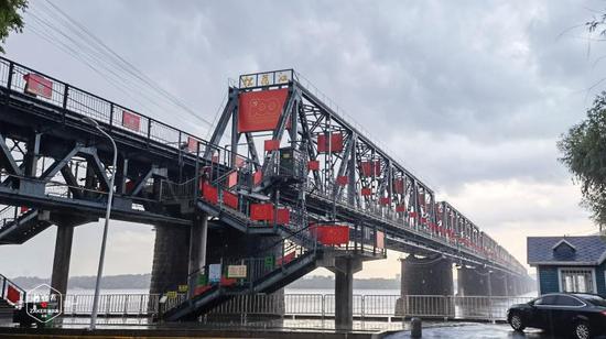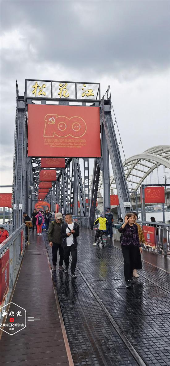 2019 年,哈尔滨在庆祝新中国七十华诞时,它曾变身 “ 国旗桥 ”,被中央电视台《新闻联播》节目报道,并吸引了近百万人次的本地市民和外地游客前来游览,与 “ 国旗桥 ” 合影,为祖国庆生。 如今,在举国上下喜迎中国共产党成立 100 周年之际,在哈尔滨日报社、中共道里区委宣传部的联合创意、策划和实施下,百年滨洲铁路桥将变身 “ 祝福桥 ”,在以 “ 中国共产党成立 100 周年庆祝活动标识 ” 图案为背景的 400 余面红旗的装点下,成为松花江上一道亮丽的风景线。