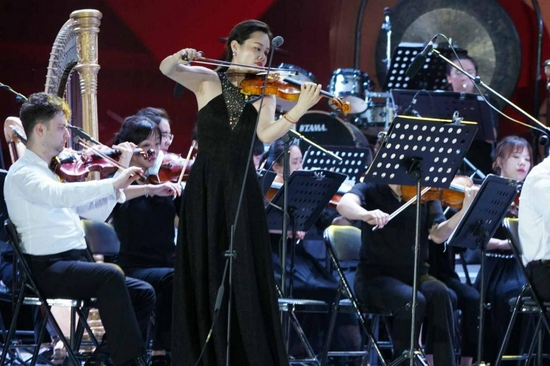 音乐会由管弦乐《中国心》拉开序幕。“河山只在我梦萦,祖国已多年未亲近,可是不管怎样也改变不了我的中国心……”张明敏演唱的《我的中国心》打动了无数炎黄子孙的心,当熟悉的旋律通过交响乐的形式进行演绎,引起了现场观众的强烈共鸣。