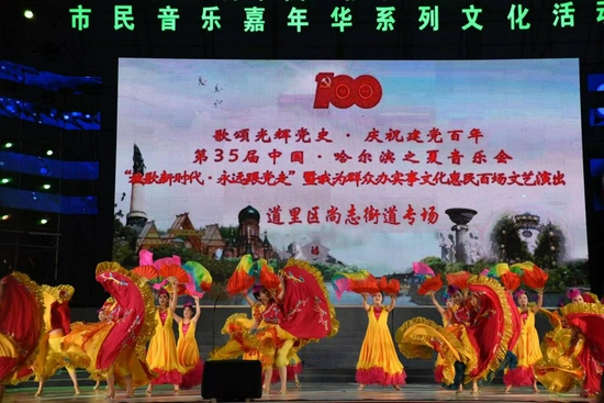 七月的冰城风光无限,七月的冰城凉爽宜人。7月27日晚7点30分,哈尔滨市防洪纪念塔广场夜空群星璀璨,舞台上灯火辉煌,一场别开生面独具特色的文艺晚会正在进行。