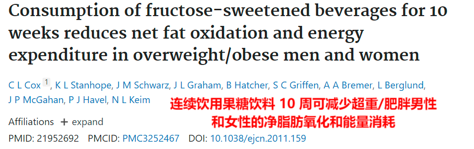 在一项为期 12 周的研究发现,每天喝含果糖饮料,新陈代谢率显著下降。⑧