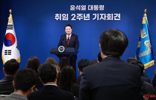 当地时间5月9日,韩国总统尹锡悦在龙山总统府举行的就职两周年国民报告会暨记者会上,就其夫人金建希收受名牌包一事向国民道歉。