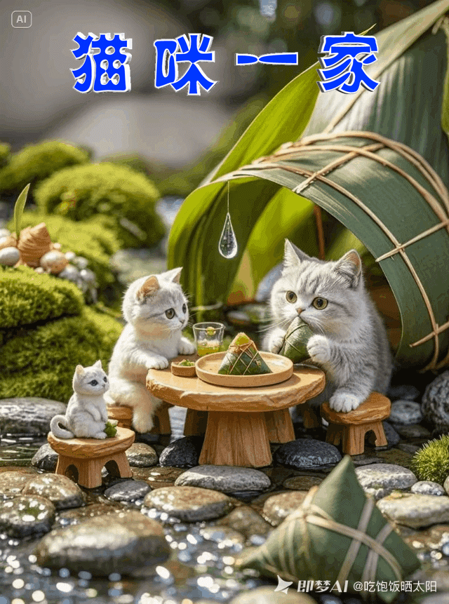 猫咪一家真有趣,品尝粽子笑嘻嘻;