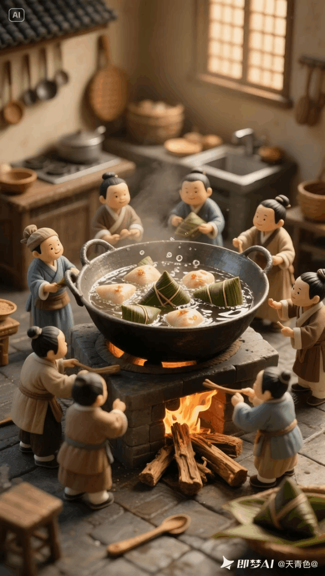 欣赏潇老师AI 美图秀秀: 小人们在煮粽子