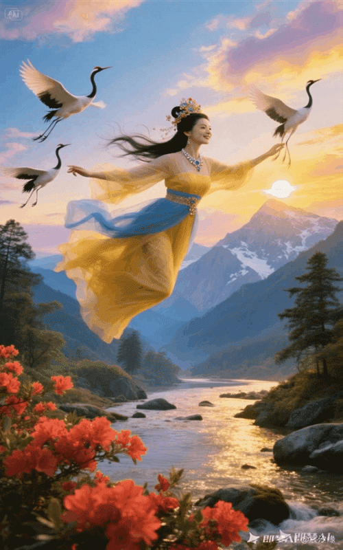 仙女配仙鹤,好画面