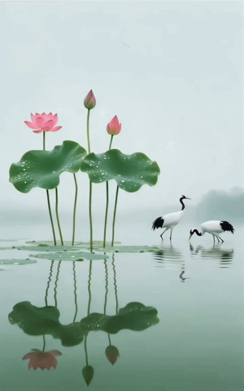 欣赏潇老师制作: 荷花仙鹤图  漂亮