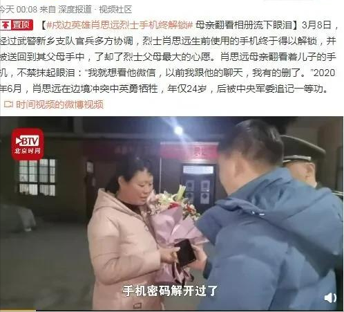 河南的武警官兵们辗转三地终于成功解锁了烈士生前使用的手机。3月8日将手机交还给烈士的母亲刘女士,刘女士激动地表示,这是她收到的“最好的礼物”。