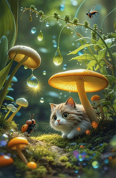 欣赏潇老师的创意《小猫与甲壳虫》。这个动图就像一个童话故事。很有意思!